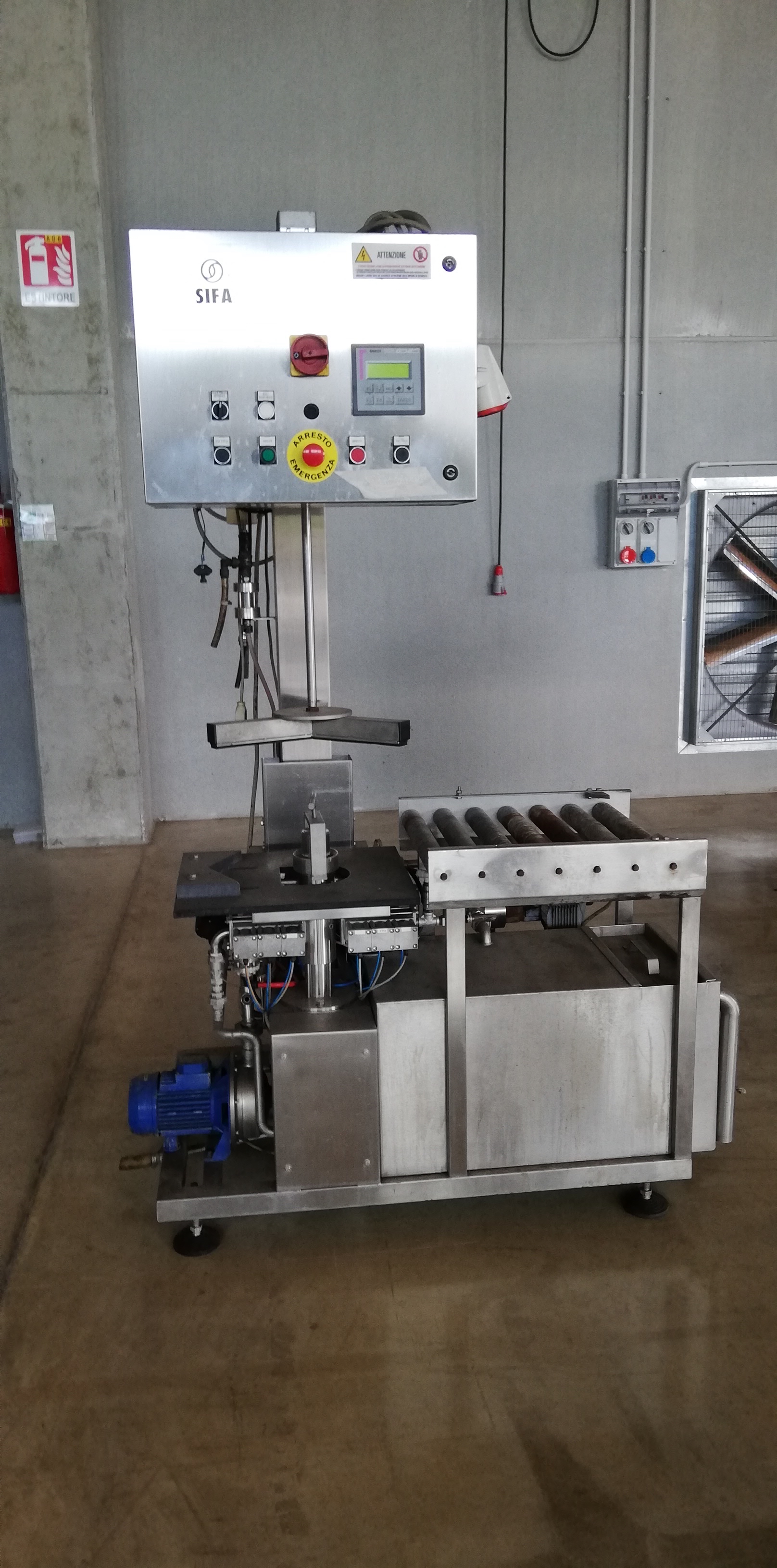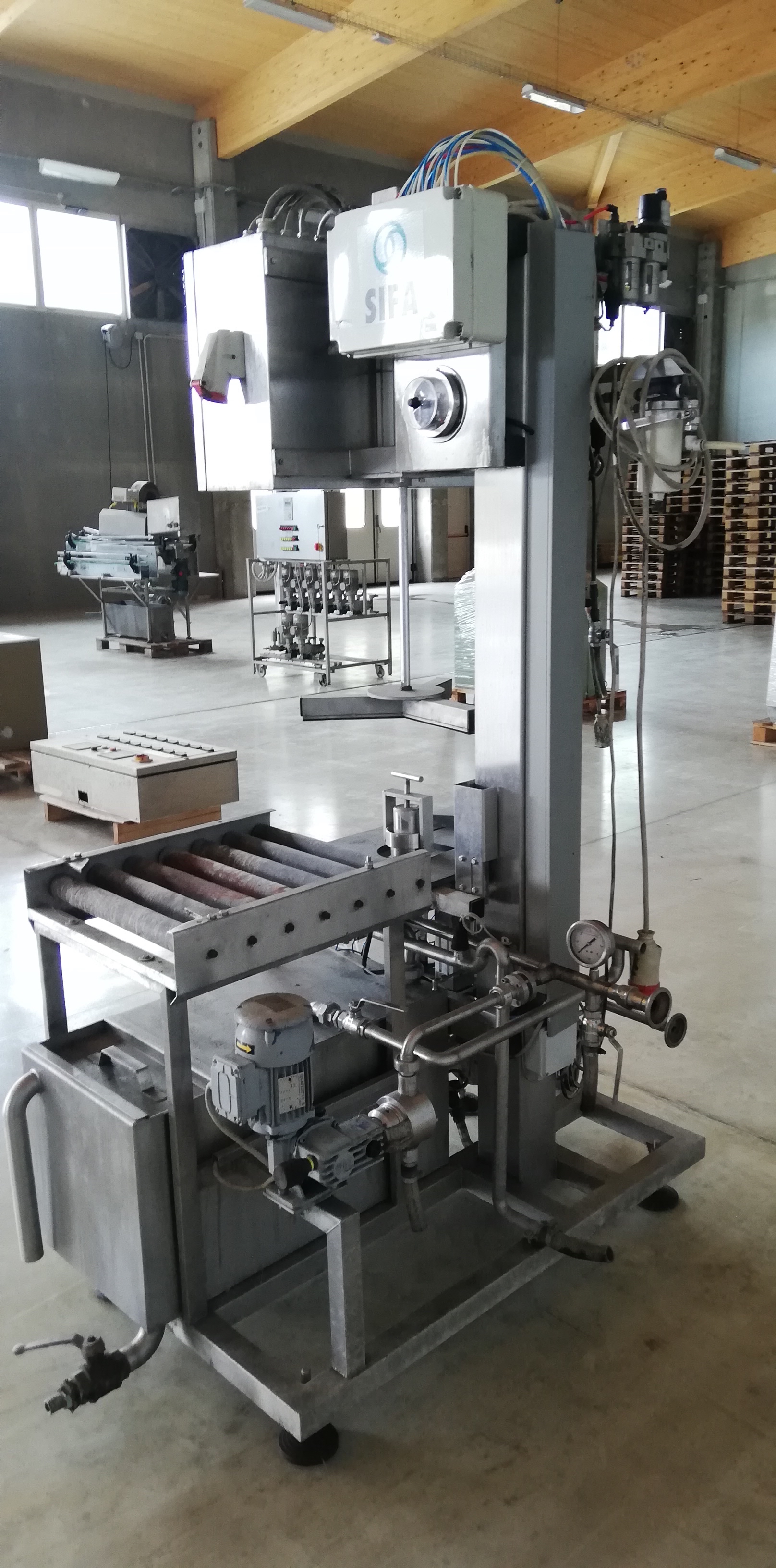 Semiautomatic Washing and Filling machine for stainless steel drums, brand SIFA.