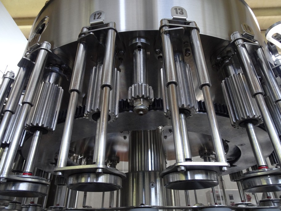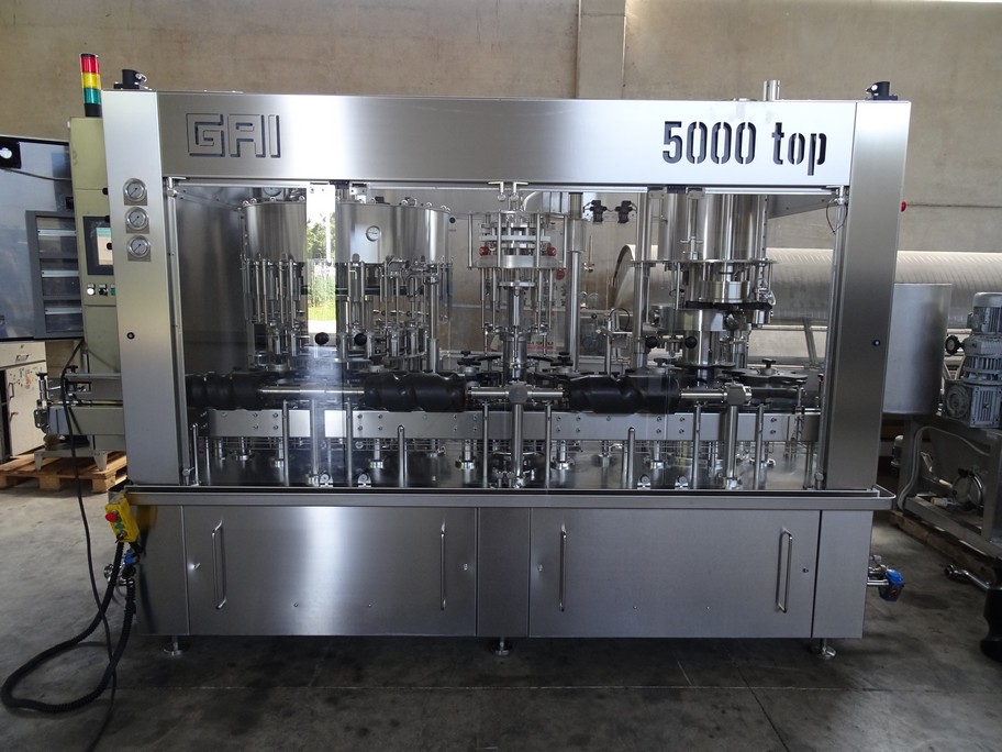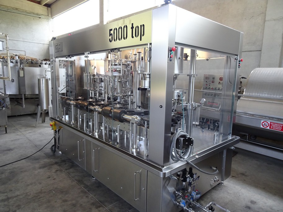 Filling machine with 20 filling valves, with slight depression and slight pressure system.