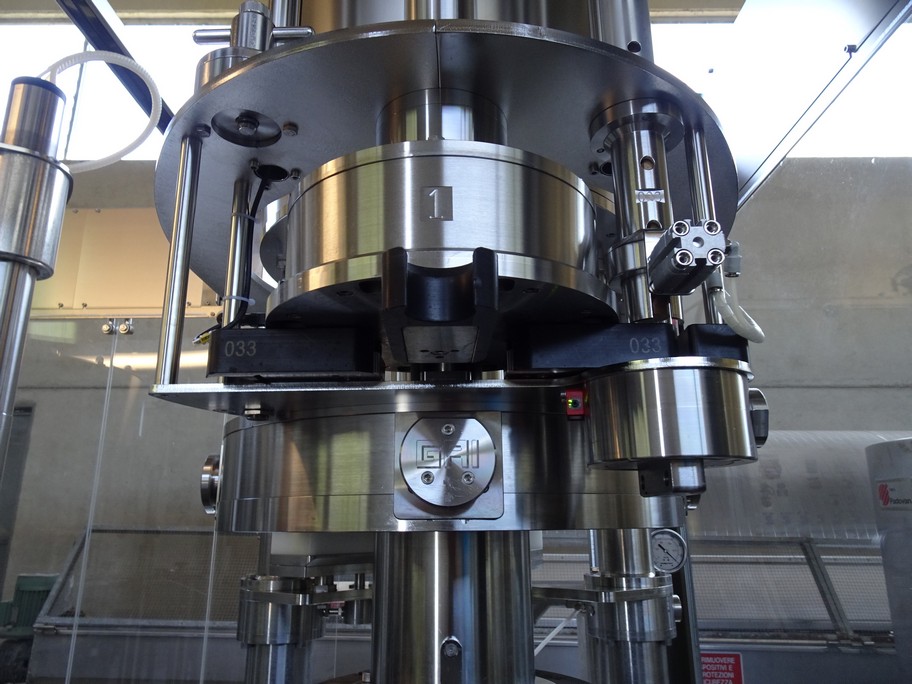 The corker has the possibility to work the mushroom cork as the customer had an in-line isobaric filling machine.